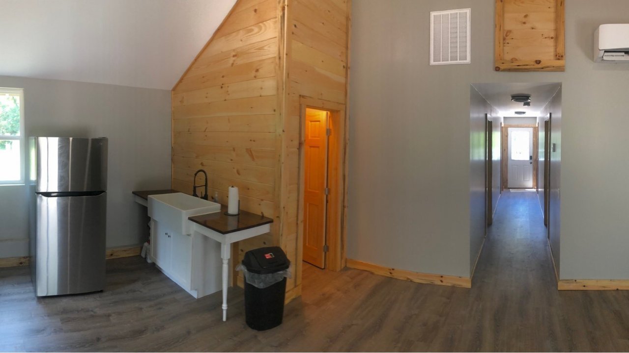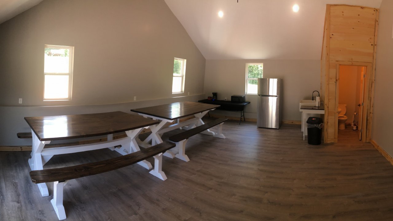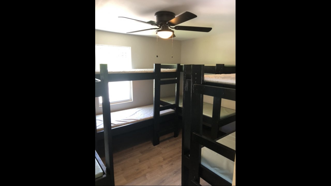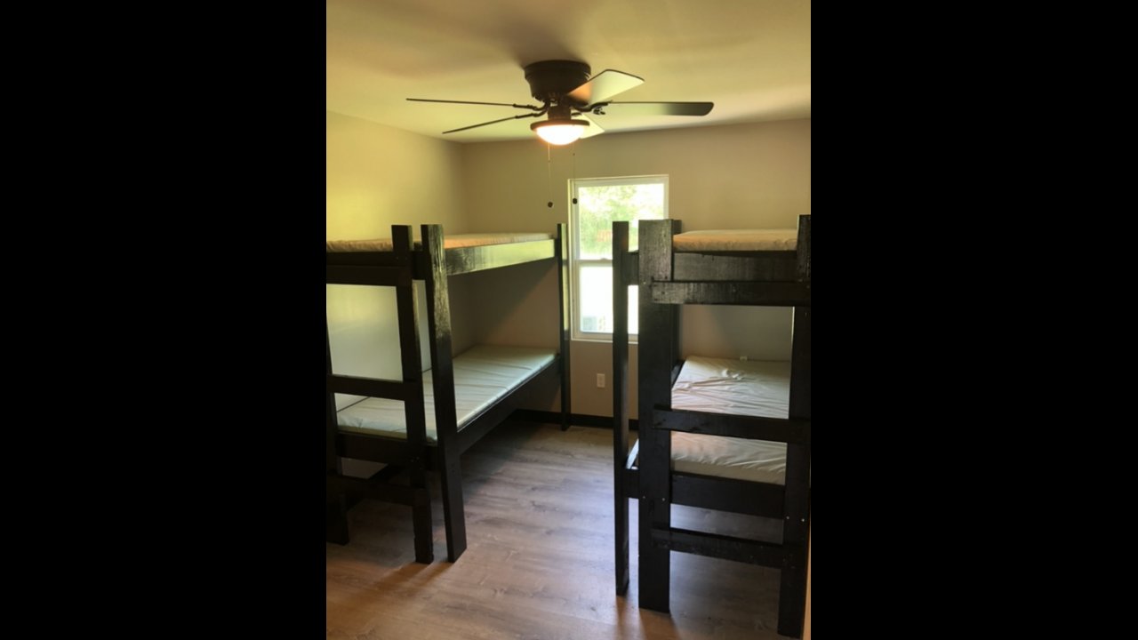 This is our BRAND NEW lodge at Big Frog! We provide mattresses so all you have to bring is your pillow, sleeping bag, and towels.